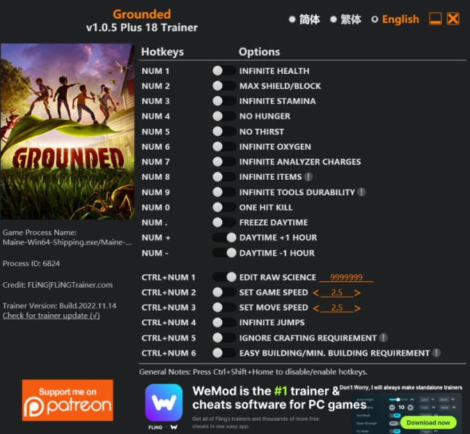 그라운디드는 작지만 넓은 정원 세계를 탐험하며 생존·전투·제작을 모두 경험할 수 있는 게임입니다. 하지만 반복되는 자원 수급, 배고픔·목마름 관리, 장비 내구도 등 때문에 오래 플레이하다 보면 피로가 쌓이기도 하죠. 이러한 불편함을 줄이고 자유롭게 탐험하려는 유저라면 트레이너 기능을 활용해볼 수 있습니다. 아래에서는 주요 기능을 체계적으로 정리하고, 어떤 상황에서 유용한지도 함께 설명합니다.